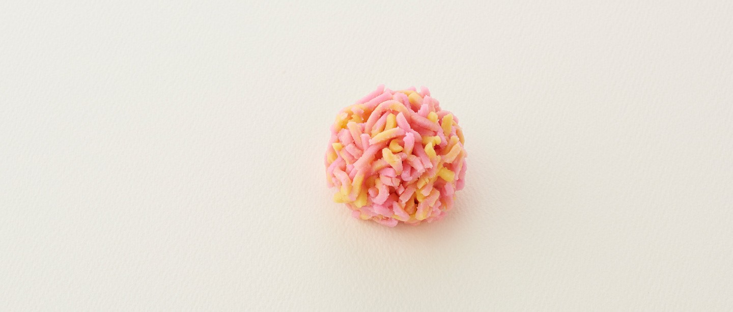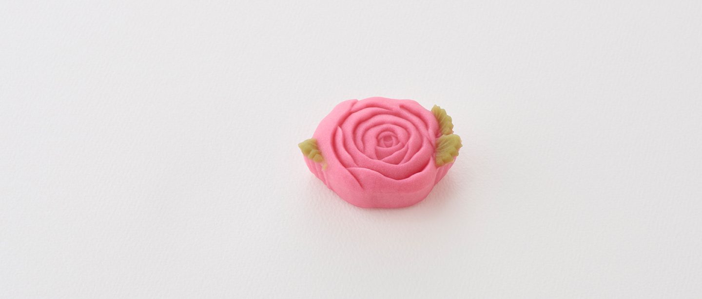 Pâte d’azuki blancs, farines de blé et de riz, relevées délicatement à l’eau de rose, dont le parfum se répand agréablement en bouche.